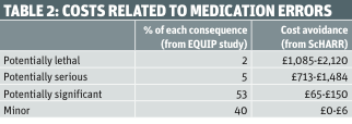 The School of Health and Related Research at Sheffield University defined the costs related to medication errors (see table 2). EMCPN attempted to assign a financial value to the most significant contributions by working on the assumption that a contribution of major significance in its audit was equivalent to either “potentially lethal” or “potentially serious” in the Sheffield model.